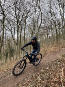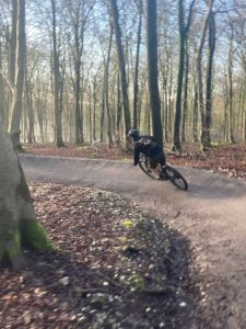 The Light Blue Trail is situated above the Benham's Bushes car park between the two main skills areas and at the finish of the main Blue Trail. It runs parallel to the gravel road that goes up to the South Downs Way (which serves as the climb).